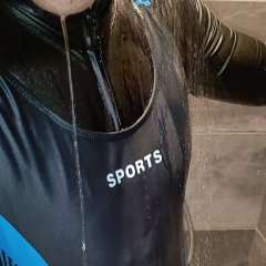 Shower in Catsuit and Swimsuit